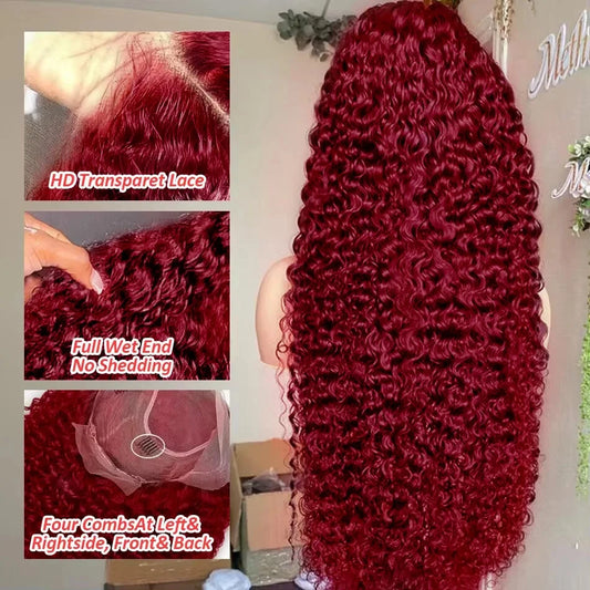 13x4 99J Burgundy Deep Wave LaceFrontal Wig Curly Lace Front